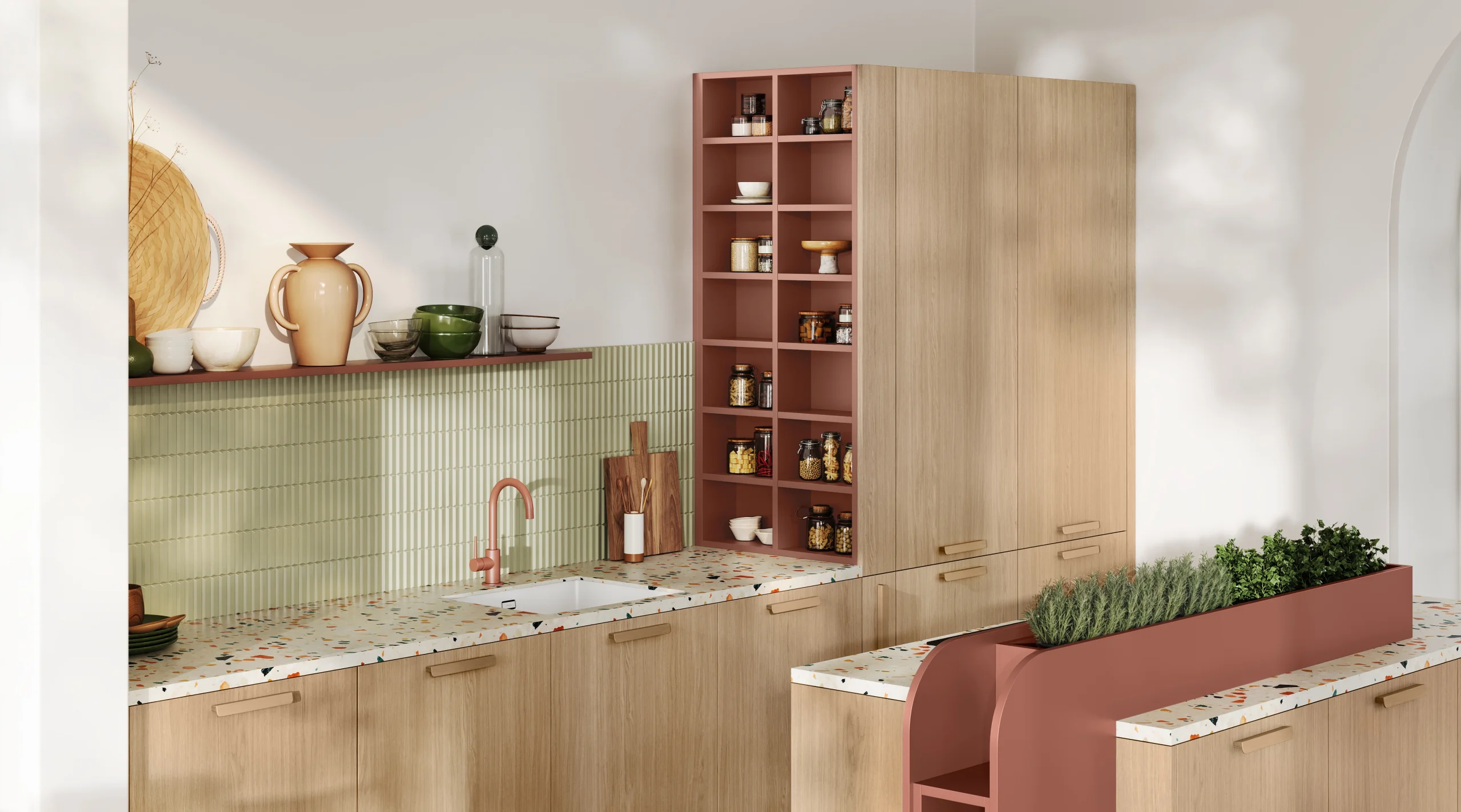 Le bois est le caméléon du design ! Pour une ambiance « Japandi » très apaisante, associez-le à des teintes douces comme le blanc mat ou le cachemire. Pour un style plus architectural et luxueux, il se marie à la perfection avec un plan de travail effet marbre, des finitions minérales, ou même des touches de noir mat, créant ainsi un contraste saisissant et moderne. Vous pouvez aussi trouver d’autres inspiration en cliquant ici