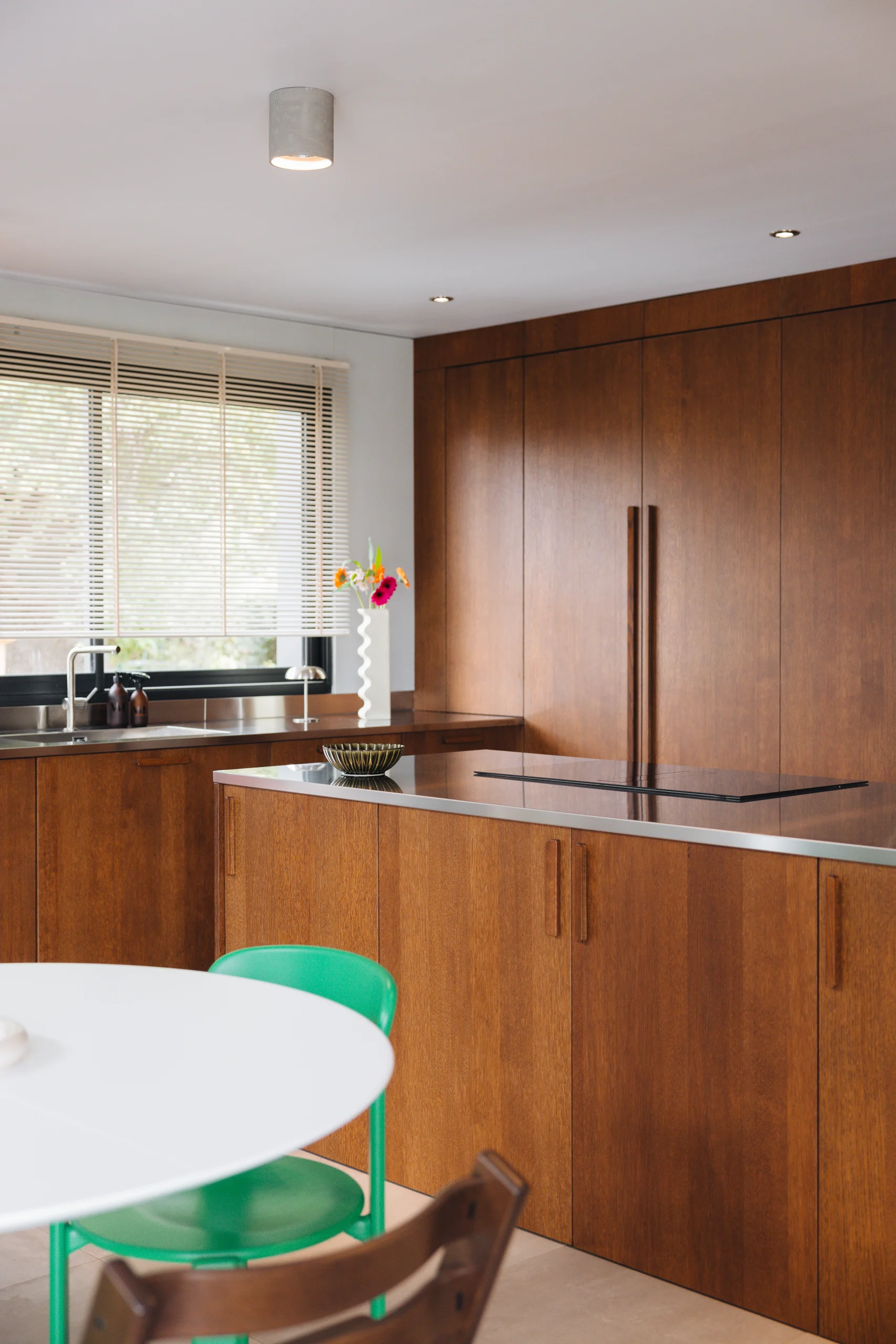 Contrairement au massif, le panneau plaqué permet de créer de grandes façades parfaitement lisses et épurées, idéales pour un design 100 % contemporain. De plus, nos vernis hydros mats protecteurs invisibles scellent la porosité du bois tout en préservant son toucher brut. Le placage s’associe d’ailleurs magnifiquement avec des laques pour un contraste saisissant, n’hésitez pas à découvrir nos idées d’associations de couleurs et de bois pour vous inspirer.
