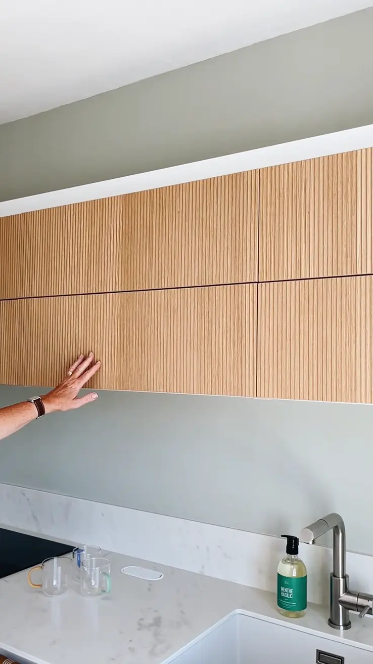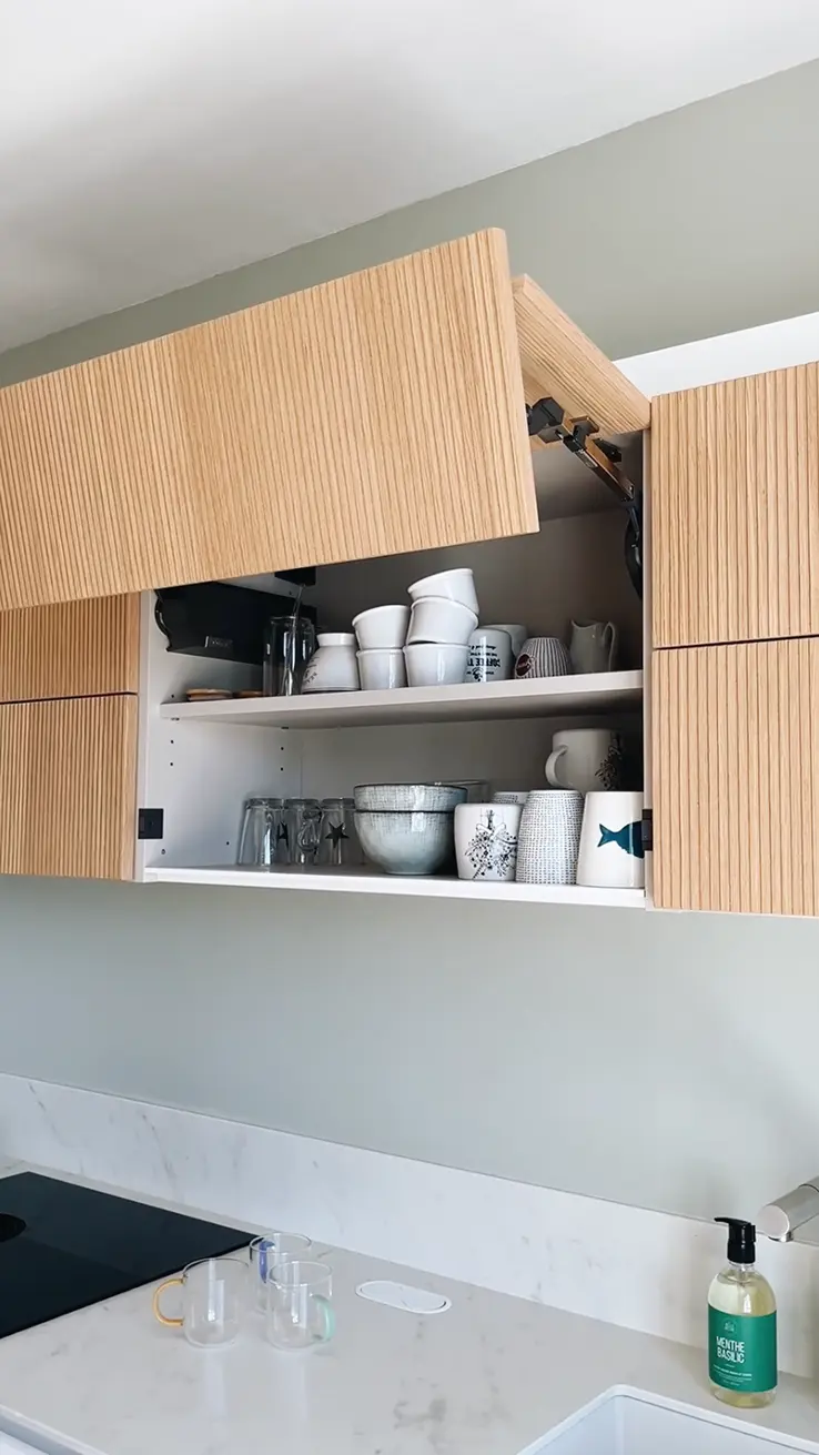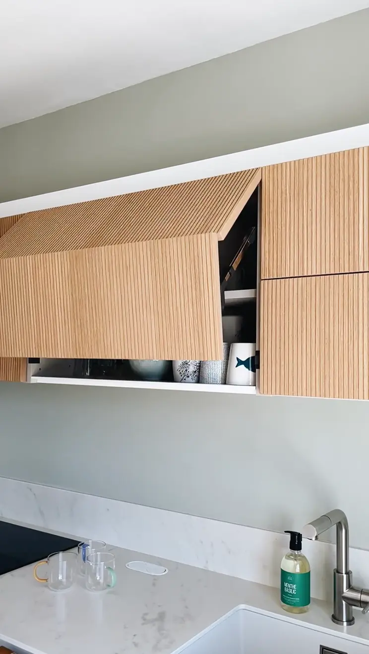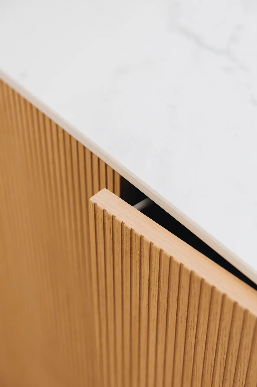 La finition chêne rainuré apporte de l’élégance et de l’authenticité à la cuisine